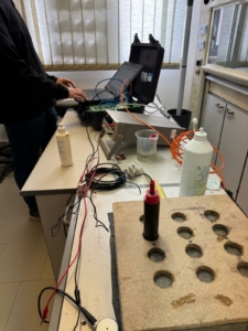 The Half-Cell Potential Test (HCP) is a non-destructive technique used to assess the risk of corrosion in reinforced concrete. By measuring the electrical potential between a reference electrode placed on the surface and the internal reinforcement, it is possible to identify areas at risk of corrosion without removing the concrete cover. More negative potential values indicate a higher probability of active corrosion, while more positive values suggest a less aggressive environment. This test is especially useful for early corrosion detection, monitoring deterioration, and planning preventive maintenance. Its advantages include speed, low cost, and non-invasiveness, although accuracy depends on the concrete’s moisture content and the electrical continuity of the reinforcement.
